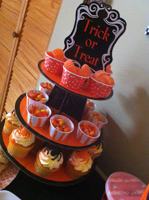 I wasn't letting any of my Halloween decor get used just once.....did I mentioned that I styled 3 different Halloween themed events this year? This cupcake stand was a Wal-Mart find that I used for this Halloween Hoedown.